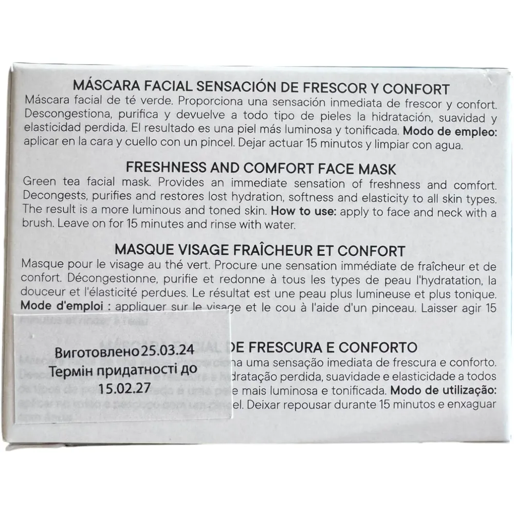 | Рекомендації | Нанести рівномірним шаром на очищену шкіру обличчя, уникаючи ділянки навколо очей та губ. Залишити на 15–20 хвилин, потім змити теплою водою. Використовувати 1–2 рази на тиждень. |