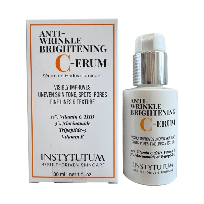 Instytutum Anti-Wrinkle Brightening C-Erum — сироватка з високою концентрацією вітаміну C (15 % THD). Вона розроблена для боротьби з ознаками старіння, тьмяним тоном і пігментацією.